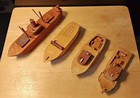 (4) Vintage Folk Art Toy Handmade Wooden Model Boats - Tugboat, Speed, Fishing+
