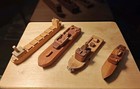 (4) Vintage Folk Art Toy Handmade Wooden Model Boats - Pt57, Tugboat, Cargo Ship