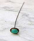 Antique Edwardian Victorian Stick Hat Pin Oval Green Stone Yellow Gold Filled