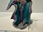 Vintage 90s Ceramic Wizard Statue With Crystal Ball, Teal And Purple Robes