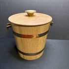 Vintage Mcm Ice Bucket Faux Wood Grain W/ Lid Glass Knob Container Barware