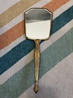 Vintage 24k Gold-plated Ormolu Hand Mirror Floral Back Hollywood Regency