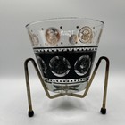 Vintage Barware Mid-century Modern Glass Ice Bucket Black Gold Coins Brass Stand