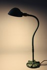 Vintage Industrial Adjustable Gooseneck Desk Lamp, Cast Iron Base, Green, Works