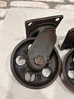 (2) Vintage Cast Iron Casters Industrial Iron Ore Cart Wheels 8”, Spin Freely