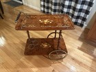 Italian Intricate Floral Inlay Marquetry Tea Cart Vintage