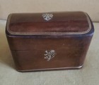 Old Vintage Italian Leather Covered Armorial Coat Arms Double Playing Cards Box
