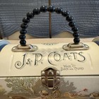 Vintage J&p Coats Tin With Blue Beaded Handle Sewing Thread Theme 2007