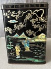 Vintage Japanese Tea Tin Canister, Container, Hand Painted ~ 5 3/8" Hi X 3" Dia