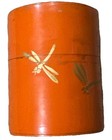 🗃️🪭 Vtg Japanese Tea Tin | 3” Orange Lacquer | Hand-painted Gold Dragonflies