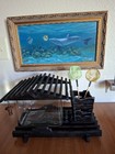 Vintage Antique Aquarium Rare Wooden Japanese Fishbowl Stand & Battery Case Bowl