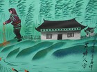 Vintage Japanese Gouache Watercolor Painting Girl Ducks Glass Frame Signed