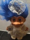 Vintage Russ Troll Bar Mitzvah Jewish Star Hanukkah Female White Dress Blue Hair