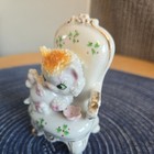 Vtg Sugar Porcelain Kitty Cat Texture Spaghetti On Victorian Chair Figurine 4"