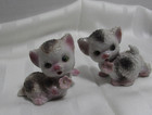 Vintage 3 Sugar Glazed Ceramic Cats / Kittens Japan