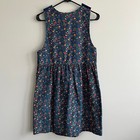 Vintage Lands' End Girl's Corduroy Jumper Dress Blue Floral Sleeveless Large