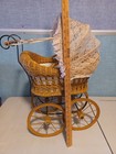 Vintage Large 25 Inch Baby Doll Carriage Buggy Lace Canopy Wicker Metal Working