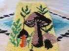 Vintage 70s Mushroom Latch Hook Rug Wall Hanging Retro Shag Art Mod Forest Fungi