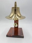 Vintage Brass Fog Tabletop Bell Boat Marine Nautical Hardware Usa Wood Base