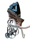 Vintage Victorian Wicker Rattan Baby Doll Carriage Stroller With Metal Wheels