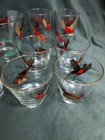 Hazel Atlas Pheasant Vintage Ice Bucket & Cocktail Glasses Mcm Glass