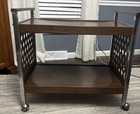 Vintage Mid Century 2-tier Wood Rolling Bar Serving Tv Cart Lattice Detail