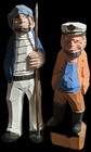 Vintage Hand Carved Wood Sea Captain & Fisherman Nautical Folk Art Figures