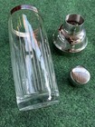 Midcentury Cocktail Martini Shaker Bar Glass Stripped Aluminum Top 3 Piece Vtg