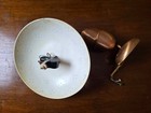 Mid Century Modern Vintage Gold Metal Atomic Saucer Hanging Lamp 14"