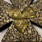 Vintage Milagros Cross Mexican Folk Art Metal Brass Wood 7x8.5”