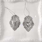 Pair 2 Vintage Sacred Heart Ornaments Punched Tin Mexican Ex Voto Milagros 4"