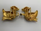 Vintage Mimi Di N Golden Owls Pair Hook Belt Buckle, Signed 1970