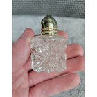 Vintage Crystal Cut Glass Miniature Salt And Pepper Shakers Silver Lid Mini 1 In