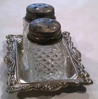Vintage Mini Glass & Silver Plated Salt & Pepper Shaker With Tray Hong Kong