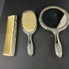 Vintage 3 Piece Dresser Vanity Set Silver Plated Mirror, Brush And Comb (heavy)