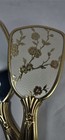 Vintage Mirror And Brush Set Vanity Set Gold Tone Floral Design Metal Hand Held