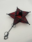 Vintage Moravian Star Hanging Lantern Candle Tealight Holder Glass Metal 17 Pts.