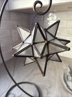 Vintage Moravian Star Hanging Lantern Candle Holder Glass Metal