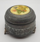 Music Trinket Box Metal Footed Powder Puff Round 4" Vintage