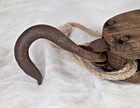 Antique Nautical Wood Block Ship Pulley With Rope And Iron Hook