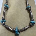 Vintage Navajo Sterling Silver Bench Bead Turquoise Nugget Necklace 16”/ 24 Gram