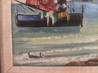 Antique Seascape Oil Painting Sail Boats Dock Sailors