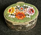 Vintage Italian Glass Micro Mosaic Floral Silver Plated Pill Box