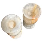 Vtg Lot Of 2 Natural Solid Hand Carved Onyx Marble Stone Candlestick Holder 9"
