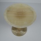Lg Vintage Carved Natural Banded Onyx Marble Stone Footed Pedestal Candle Holder