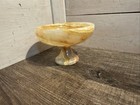 Vtg Onyx Marble Compote Pedestal Bowl Cream Brown Natural Stone Decor
