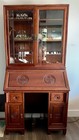 Vintage Asian Chinoiserie Rosewood Secretary Desk Curio Cabinet Two Piece