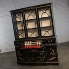 Vintage Oriental Chinoiserie Decorated Secretary Breakfront Cabinet