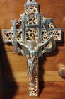 Antique Vintage Art Deco Metal Filigree Wall Crucifix Cross Jesus Gilded Ornate
