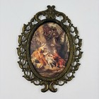 2 Vintage Small Brass Filigree Glass Frames Print Girl Floral Wall Art Italy